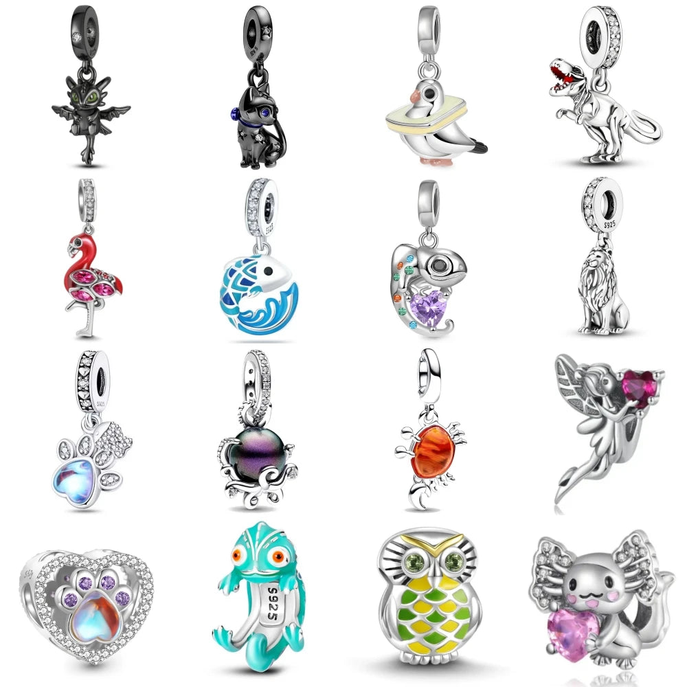 CHARM STERLING SILVER 925 DRAGO GATTO ANIMALI DINOSAURO CARTONI ANIMATI