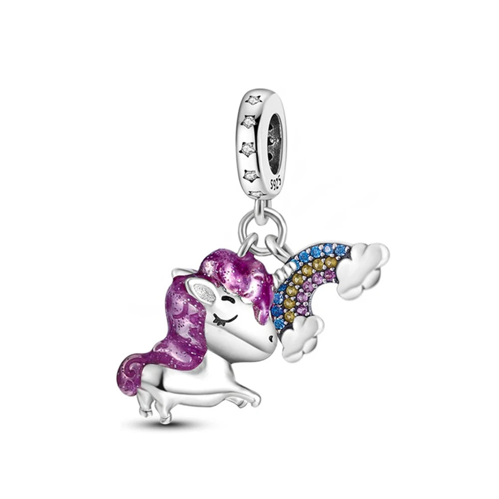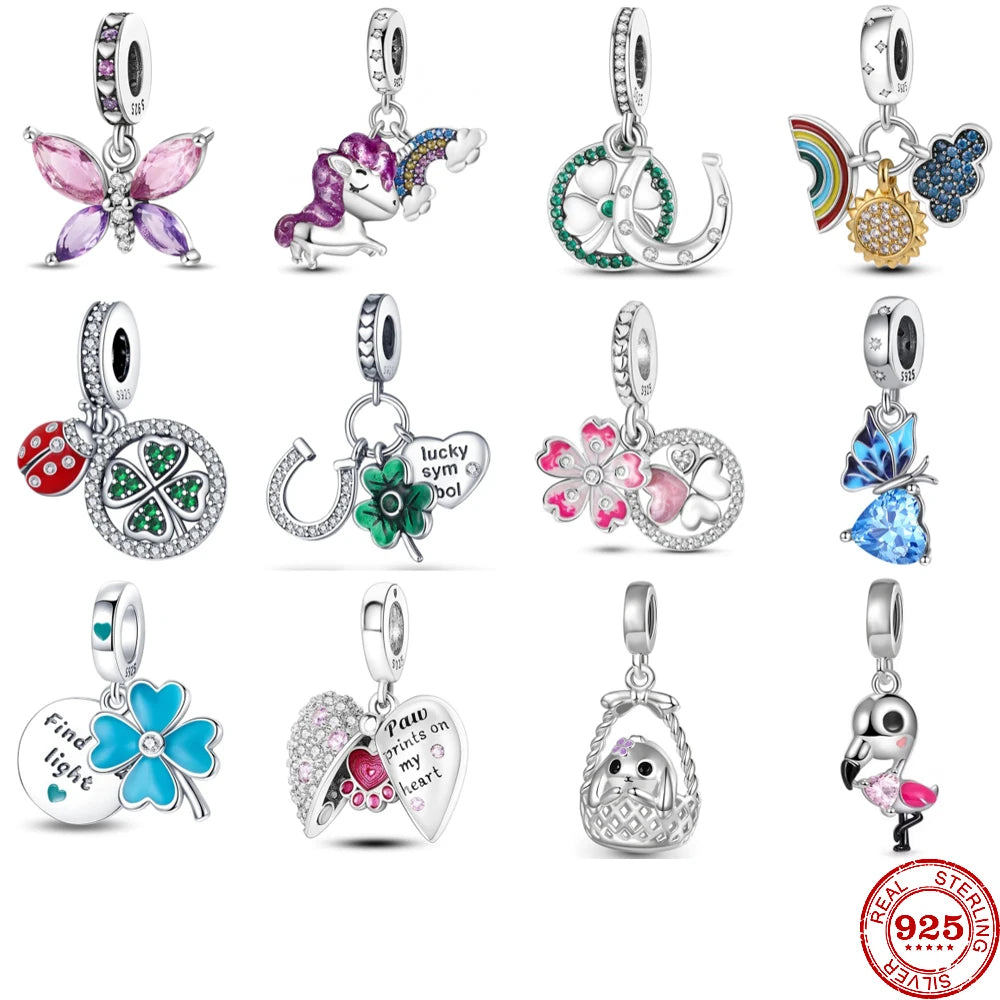 CHARM STERLING SILVER 925 FARFALLA UNICORNO PORTAFORTUNA CUORE ANIMALI