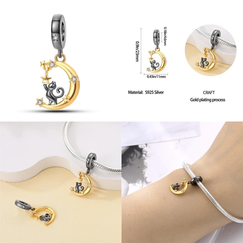 CHARM STERLING SILVER 925 GATTO LUNA NOVITA' APRILE 2025